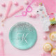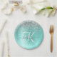 Personalice fácilmente este diseño de placas de papel de moda de moda con purpurina brillante de bonito plateado sobre un fondo metálico verde azulado cepillado.