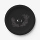 Elegante y distinguido plato de papel monograma con un negro negrita detrás de su monograma enmarcado con flor de corona.