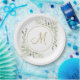 Plato De Papel Monograma elegante de guión dorado Verdes