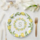 Plato De Papel Monograma Elegante de Limones y Verdor