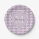 Plato De Papel Monograma elegante Houndstooth purpúreo claro con