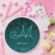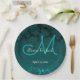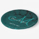 Plato De Papel Monograma elegante turquesa blanco oscuro Verde az