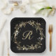 Plato De Papel Monograma En La Guirnalda De Oro En Negro