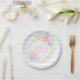 Plato De Papel Monograma Fancy Roses rosados Placas de papel azul