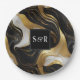 Plato De Papel Monograma Faux Gold, Black & White Marble Boda
