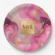 Plato De Papel Monograma Faux Gold y Boda de Marble Rosa