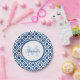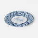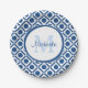 Plato De Papel Monograma geométrico moderno azul y blanco con nom
