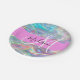 Nombre de monograma holográfico iridiscente con arcoiris grisáceo y placas de papel iniciales. Su nombre personalizado y su monograma están escritos en un guión elegante con letras a mano con un fondo rosado. ¡Un regalo perfecto de cumpleaños o Navidades!