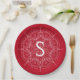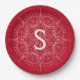 Plato De Papel Monograma Lazo Blanco Sobre Rojo