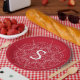 Elegante diseño de encaje blanco con fondo rojo. Se puede cambiar el color de fondo. Se puede cambiar la letra del monograma.