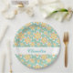 Plato De Papel Monograma lindo naranja flores en verde