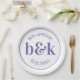 Plato De Papel Monograma mínimo moderno Iniciales Boda púrpura