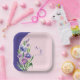 Plato De Papel Monograma morado floral Elegante fiesta de bodas e