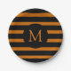 Plato De Papel Monograma Naranja moderno y franjas negras