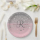 Plato De Papel Monograma Nombre Estrellas rosadas de plata gris B