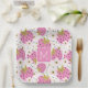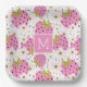 Plato De Papel Monograma Personalizado de fresas rosadas