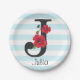 Plato De Papel Monograma personalizado editable J texto flor roja