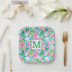 Plato De Papel Monograma Preppy de los conejitos de primavera de