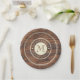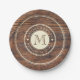 Plato De Papel Monograma rústico de corazón Boda en nogal oscuro