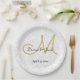 Plato De Papel Monograma simple de matrimonio elegante blanco dor