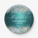 Plato De Papel Monograma Verde azulado moderno de imitación holog