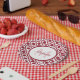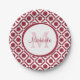 Plato De Papel Monograma y nombre geométrico moderno rojo y blanc