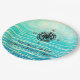Plato De Papel Monogramado del mar verde azulado de Ombre