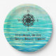 Placas de papel monogramadas verde azuladas del mar de Ombre. Un rosa de brújula para mantener tus travesías oceánicas. Disfrute del elegante efecto de ilusión óptica con los tonos Verde azulados a azul a turquesa del fondo sombrío. Náutica, tropical, Beach House, estilo costero. Mantén la cita "Bienvenidos a la Casa de Playa de Gilbert" o añade tu propio nombre, sentimiento, saludos o monograma al personalizar.