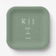 Plato De Papel Monogramas verdes sage Boda simple mínimo moderno