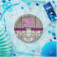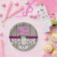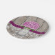 Bonito de estilo rústico monogramado de papel de tarro de masón con una flor de hidrato púrpura rojiza y una valla de madera con un fondo de encaje de patrón de damasco antiguo y cinta de color de ciruela cosida. Esta ducha boda o nupcial, o una ducha de pareja, un plato de fiesta de compromiso o aniversario personalizado con las iniciales y el monograma de la pareja feliz o novia y novio en el tarro de albañil es perfecto para una ocasión o celebración especial de campo, casa de campo, fiesta de jardín o estilo de jardín. Diseñado por Chrissy H. Studios, LLC. Todos Los Derechos Reservados.