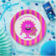 Plato De Papel Monstruo de Niña Segundo Cumpleaños Estripas Rosad