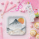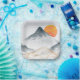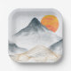 Ilustracion de pintura de acuarela de Blue Mountain. Resumen de los paisajes estéticos contemporáneos, con montañas, colinas, sol y arte lineal