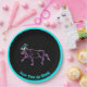 Representación como un neón de un alce de toro sobre un fondo negro. Añade tu propio texto. Inspirado por las auroras boreales.