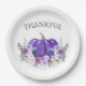 Las calabazas de calabaza color morado de papel floral aportan un inesperado esquema de color a la decoración de la mesa de Acción de Gracias. Los tonos púrpura, gris y verde hacen una declaración elegante. Personalice el texto con su propio personalizado o mantenga el mensaje de agradecimiento.