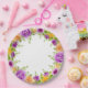 Flores moradas y amarillas con color de agua follaje verde rima estas placas de papel - disponibles en 2 tamaños. Utilícelo para su boda, duchas de novias, fiestas del jardín o cualquier evento especial. **TIP: Haga clic en el botón PERSONALIZAR (o en el vínculo adicional del personalizar al personalizar) para agregar una redacción o cambiar el color del fondo blanco. COORDINANDO invitaciones, servilletas y más —> http://bit.ly/2SMa4jO <—