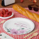 El elegante y florido plato de papel de la ducha nupcial de verano incluye un ramo de dalia acuática en tonos violeta y rosa, con hojas botánicas verdes y eucalipto. Por favor, encuentre más diseños que coincidan y variaciones de mi tienda de "momento de celebración".