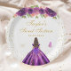 Este elegante y glamoroso plato de dieciséis platos cuenta con una bella princesa con el pelo de morena y piel clara en un vestido de bolas moradas oscuro. El texto combina el guión manuscrito y las fuentes sans serif modernas para un aspecto elegante y sofisticado. Los arreglos florales, las mariposas y los confeti dorados crean una perfecta mezcla de rústico y moda. Gráficos de www.etsy.com/uk/shop/SunflowerDayLove