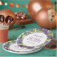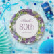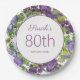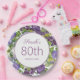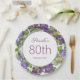 Hermosa acuarela púrpura floral con hojas verdes y viñas placas fiestas de papel de 80 años (o cualquier edad) personalizadas con un nombre y una edad.