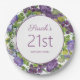 Plato De Papel Morado Floral Verdes Vines 21 cumpleaños