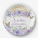 Plato De Papel Morado Lilac Floral Quinceañera Corona Butterflies