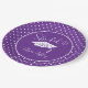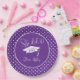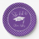Púrpura Lo Hizo Graduando placas. Celebra tu graduación con estilo con estos modernos materiales de fiesta de graduación morada y blanca y decoración fiesta con gorra blanca de graduación, letras de guión para "She did it" y su nombre y año de clase. vajilla de graduación morada y blanca.