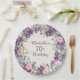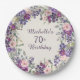 Estas placas de papel para fiestas de 70 años están diseñadas con una linda corona de color morado y rosa rubor de hojas florales y verdes de salvia. El texto es totalmente personalizable, así que diseñe estas placas de fiesta de papel para cualquier edad.