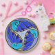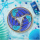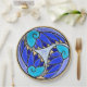 El diseño japonés de lirios de agua da un aspecto radicalmente nuevo a la pintura digital original de Leslie Sigal Javorek que adorna este plato. Aspecto hecho con azulejos de cerámica en lila, periwinkle, azul, aqua y marfil; en el centro está el hebreo "Chai" (Vida). Bonito suficiente para las vacaciones o fiestas.