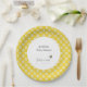 Baby shower paper plate or bowl personalized with a "mother-to-bee" theme. It's designed with a simple pattern of daisy flowers in yellows and whites with a cute little bee accent. Text is pre-formatted and ready for your own details. Coordinates with baby shower invitation and other items in this same collection.