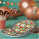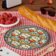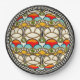 Este plato de papel de colores vivos se inspiró en una mezcla ecléctica de estilos artísticos (papel pintado japonés vintage, disfraces diseñados por Alphonse Mucha, y varias obras del ceramista Art Deco, Clarisse Cliff), la pintura digital original de Leslie Sigal Javorek que combina colores agradables, formas orgánicas y distinción audaz a tu mesa.