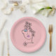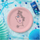 Plato De Papel Mujer Con Flores Línea De Arte Rosa