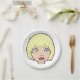 Retrato de una mujer de cabello amarillo. Este diseño parece realmente efectivo en estas placas de papel