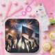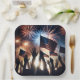 Plato De Papel Multitud con banderas estadounidenses y fuegos art