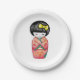 Plato De Papel Muñeca Kokeshi - Chica Kimono Geisha