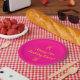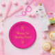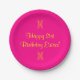 Coloridos platos de papel rosa y amarillo personalizado de cumpleaños. Ideal para los que no quieren lavar muchos platos.